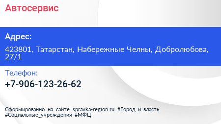 Автосервис по адресу 423801, Татарстан, Набережные Челны, Добролюбова, 27/1 в дальнейшем Организация, размещена в следующих категориях: