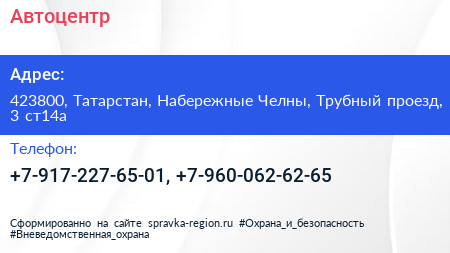 Автоцентр по адресу 423800, Татарстан, Набережные Челны, Трубный проезд, 3 ст14а в дальнейшем Организация, размещена в следующих категориях: