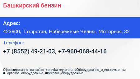 Башкирский бензин по адресу 423800, Татарстан, Набережные Челны, Моторная, 32 в дальнейшем Организация, размещена в следующих категориях:
