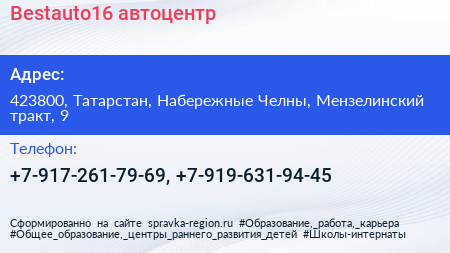Bestauto16, автоцентр по адресу 423800, Татарстан, Набережные Челны, Мензелинский тракт, 9 в дальнейшем Организация, размещена в следующих категориях: