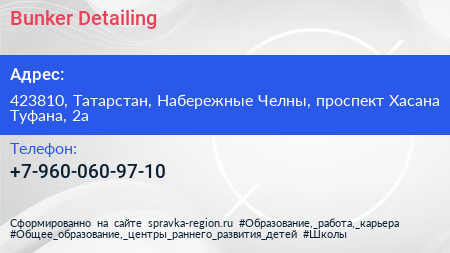 Bunker Detailing по адресу 423810, Татарстан, Набережные Челны, проспект Хасана Туфана, 2а в дальнейшем Организация, размещена в следующих категориях: