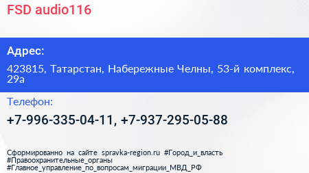 FSD.audio116 по адресу 423815, Татарстан, Набережные Челны, 53-й комплекс, 29а в дальнейшем Организация, размещена в следующих категориях: