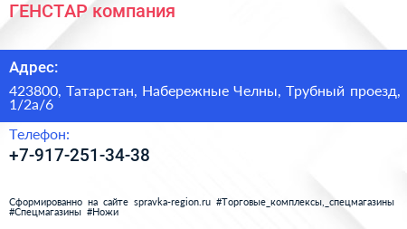 ГЕНСТАР, компания по адресу 423800, Татарстан, Набережные Челны, Трубный проезд, 1/2а/6 в дальнейшем Организация, размещена в следующих категориях: