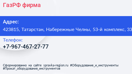 ГазРФ, фирма по адресу 423815, Татарстан, Набережные Челны, 53-й комплекс, 33 в дальнейшем Организация, размещена в следующих категориях: