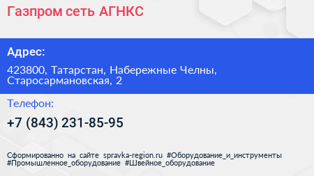 Газпром, сеть АГНКС по адресу 423800, Татарстан, Набережные Челны, Старосармановская, 2 в дальнейшем Организация, размещена в следующих категориях: