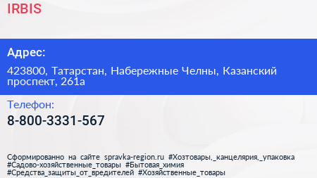 IRBIS по адресу 423800, Татарстан, Набережные Челны, Казанский проспект, 261а в дальнейшем Организация, размещена в следующих категориях: