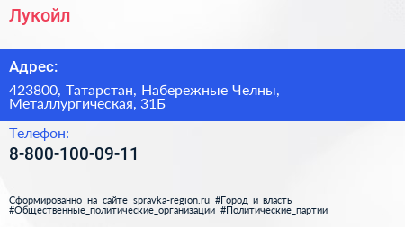Лукойл по адресу 423800, Татарстан, Набережные Челны, Металлургическая, 31Б в дальнейшем Организация, размещена в следующих категориях: