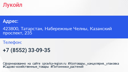 Лукойл по адресу 423800, Татарстан, Набережные Челны, Казанский проспект, 235 в дальнейшем Организация, размещена в следующих категориях: