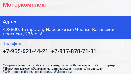 Моторкомплект по адресу 423800, Татарстан, Набережные Челны, Казанский проспект, 236 ст2 в дальнейшем Организация, размещена в следующих категориях: