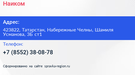Наиком по адресу 423822, Татарстан, Набережные Челны, Шамиля Усманова, 3Б ст1 в дальнейшем Организация, размещена в следующих категориях: