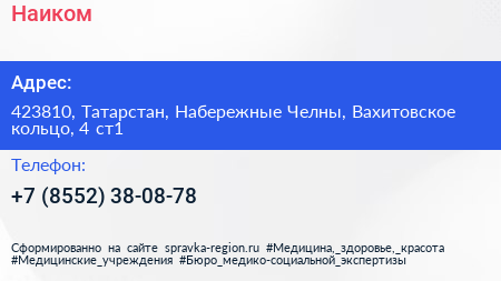 Наиком по адресу 423810, Татарстан, Набережные Челны, Вахитовское кольцо, 4 ст1 в дальнейшем Организация, размещена в следующих категориях: