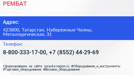 РЕМБАТ по адресу 423800, Татарстан, Набережные Челны, Металлургическая, 31 в дальнейшем Организация, размещена в следующих категориях: