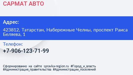 САРМАТ АВТО по адресу 423812, Татарстан, Набережные Челны, проспект Раиса Беляева, 1 в дальнейшем Организация, размещена в следующих категориях: