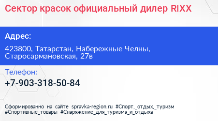 Сектор красок, официальный дилер RIXX по адресу 423800, Татарстан, Набережные Челны, Старосармановская, 27в в дальнейшем Организация, размещена в следующих категориях: