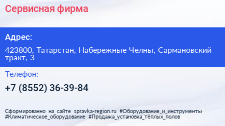 Сервисная фирма по адресу 423800, Татарстан, Набережные Челны, Сармановский тракт, 3 в дальнейшем Организация, размещена в следующих категориях: