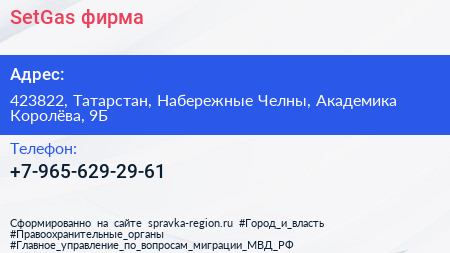 SetGas, фирма по адресу 423822, Татарстан, Набережные Челны, Академика Королёва, 9Б в дальнейшем Организация, размещена в следующих категориях: