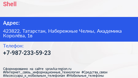 Shell по адресу 423822, Татарстан, Набережные Челны, Академика Королёва, 1в в дальнейшем Организация, размещена в следующих категориях: