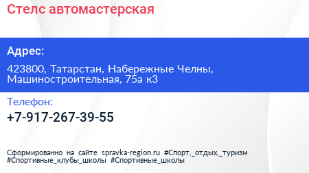 Стелс, автомастерская по адресу 423800, Татарстан, Набережные Челны, Машиностроительная, 75а к3 в дальнейшем Организация, размещена в следующих категориях: