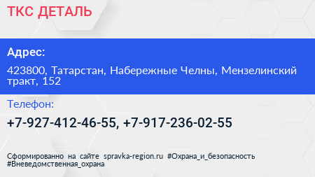 ТКС ДЕТАЛЬ по адресу 423800, Татарстан, Набережные Челны, Мензелинский тракт, 152 в дальнейшем Организация, размещена в следующих категориях: