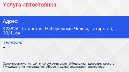 Услуга, автостоянка по адресу 423826, Татарстан, Набережные Челны, Татарстан, 30/116а в дальнейшем Организация, размещена в следующих категориях:
