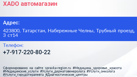 XADO, автомагазин по адресу 423800, Татарстан, Набережные Челны, Трубный проезд, 3 ст14 в дальнейшем Организация, размещена в следующих категориях: