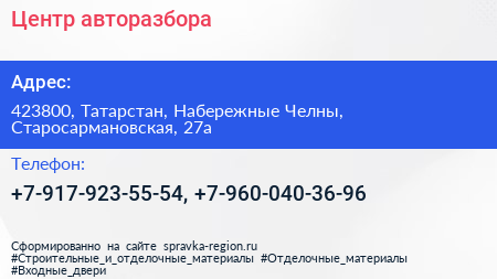Центр авторазбора по адресу 423800, Татарстан, Набережные Челны, Старосармановская, 27а в дальнейшем Организация, размещена в следующих категориях: