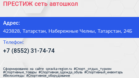ПРЕСТИЖ, сеть автошкол по адресу 423828, Татарстан, Набережные Челны, Татарстан, 24Б в дальнейшем Организация, размещена в следующих категориях: