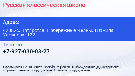 Русская классическая школа по адресу 423826, Татарстан, Набережные Челны, Шамиля Усманова, 122 в дальнейшем Организация, размещена в следующих категориях: