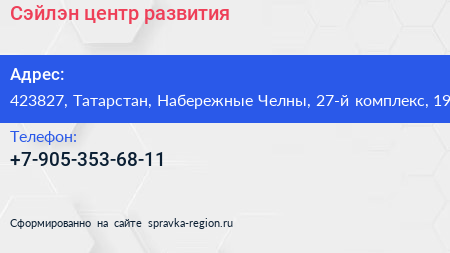 Сэйлэн, центр развития по адресу 423827, Татарстан, Набережные Челны, 27-й комплекс, 19 в дальнейшем Организация, размещена в следующих категориях: