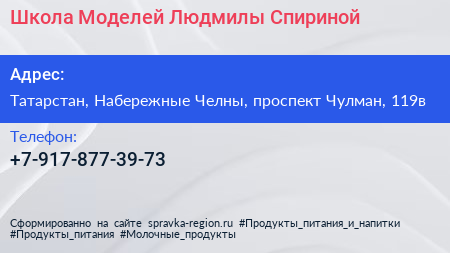 Школа Моделей Людмилы Спириной по адресу Татарстан, Набережные Челны, проспект Чулман, 119в в дальнейшем Организация, размещена в следующих категориях: