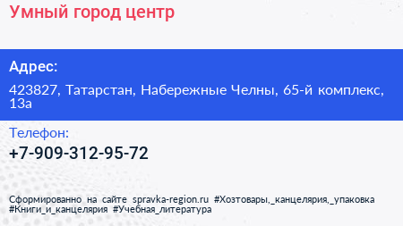 Умный город, центр по адресу 423827, Татарстан, Набережные Челны, 65-й комплекс, 13а в дальнейшем Организация, размещена в следующих категориях: