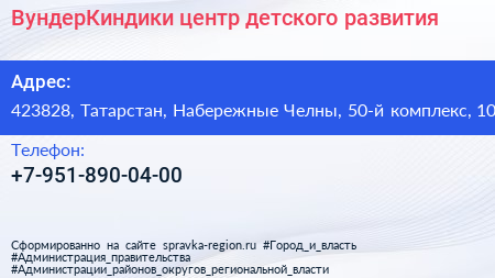 ВундерКиндики, центр детского развития по адресу 423828, Татарстан, Набережные Челны, 50-й комплекс, 10 в дальнейшем Организация, размещена в следующих категориях: