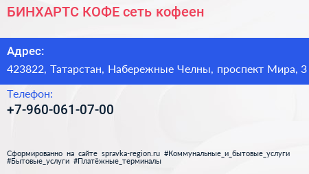 БИНХАРТС КОФЕ, сеть кофеен по адресу 423822, Татарстан, Набережные Челны, проспект Мира, 3 в дальнейшем Организация, размещена в следующих категориях: