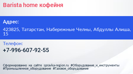 Barista home, кофейня по адресу 423825, Татарстан, Набережные Челны, Абдуллы Алиша, 15 в дальнейшем Организация, размещена в следующих категориях: