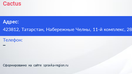 Cactus по адресу 423812, Татарстан, Набережные Челны, 11-й комплекс, 28 в дальнейшем Организация, размещена в следующих категориях: