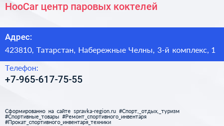 HooCar, центр паровых коктелей по адресу 423810, Татарстан, Набережные Челны, 3-й комплекс, 1 в дальнейшем Организация, размещена в следующих категориях:
