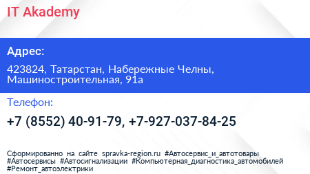 IT-Akademy по адресу 423824, Татарстан, Набережные Челны, Машиностроительная, 91а в дальнейшем Организация, размещена в следующих категориях: