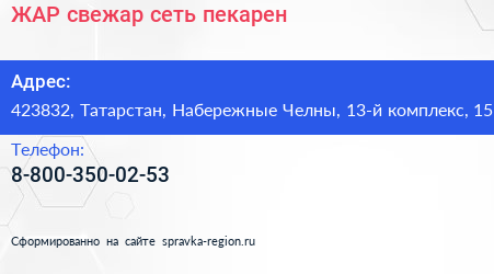 ЖАР свежар, сеть пекарен по адресу 423832, Татарстан, Набережные Челны, 13-й комплекс, 15 в дальнейшем Организация, размещена в следующих категориях: