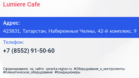 Lumiere Cafe по адресу 423831, Татарстан, Набережные Челны, 42-й комплекс, 9 в дальнейшем Организация, размещена в следующих категориях: