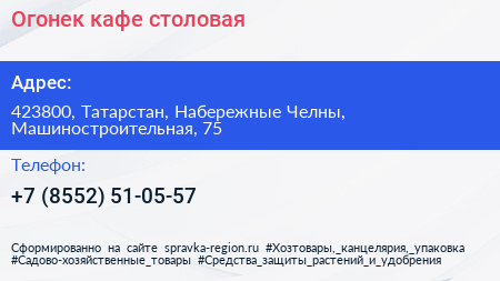 Огонек, кафе-столовая по адресу 423800, Татарстан, Набережные Челны, Машиностроительная, 75 в дальнейшем Организация, размещена в следующих категориях: