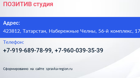 ПОЗИТИВ, студия по адресу 423812, Татарстан, Набережные Челны, 56-й комплекс, 17 в дальнейшем Организация, размещена в следующих категориях: