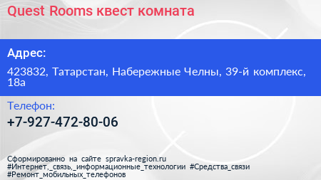 Quest Rooms, квест-комната по адресу 423832, Татарстан, Набережные Челны, 39-й комплекс, 18а в дальнейшем Организация, размещена в следующих категориях: