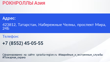 РОКНРОЛЛЫ Азия по адресу 423812, Татарстан, Набережные Челны, проспект Мира, 24Б в дальнейшем Организация, размещена в следующих категориях: