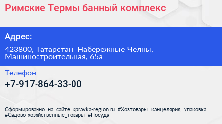 Римские Термы, банный комплекс по адресу 423800, Татарстан, Набережные Челны, Машиностроительная, 65а в дальнейшем Организация, размещена в следующих категориях: