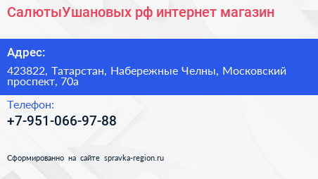 СалютыУшановых.рф, интернет-магазин по адресу 423822, Татарстан, Набережные Челны, Московский проспект, 70а в дальнейшем Организация, размещена в следующих категориях: