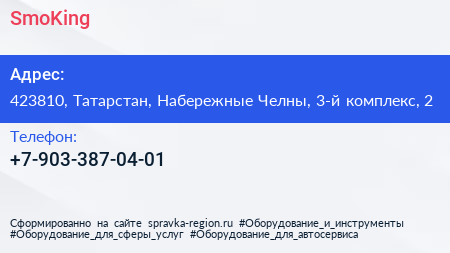 SmoKing по адресу 423810, Татарстан, Набережные Челны, 3-й комплекс, 2 в дальнейшем Организация, размещена в следующих категориях: