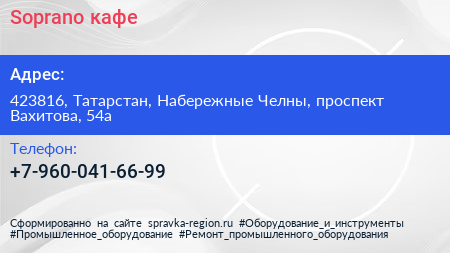 Soprano, кафе по адресу 423816, Татарстан, Набережные Челны, проспект Вахитова, 54а в дальнейшем Организация, размещена в следующих категориях: