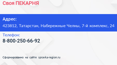 Своя ПЕКАРНЯ по адресу 423812, Татарстан, Набережные Челны, 7-й комплекс, 24 в дальнейшем Организация, размещена в следующих категориях: