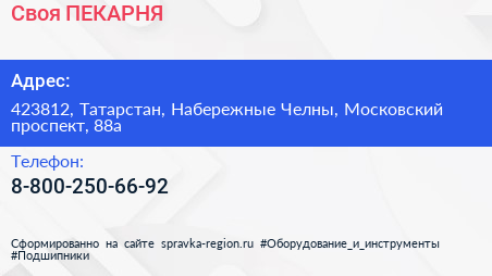 Своя ПЕКАРНЯ по адресу 423812, Татарстан, Набережные Челны, Московский проспект, 88а в дальнейшем Организация, размещена в следующих категориях: