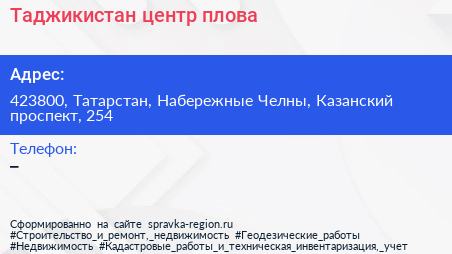 Таджикистан, центр плова по адресу 423800, Татарстан, Набережные Челны, Казанский проспект, 254 в дальнейшем Организация, размещена в следующих категориях: